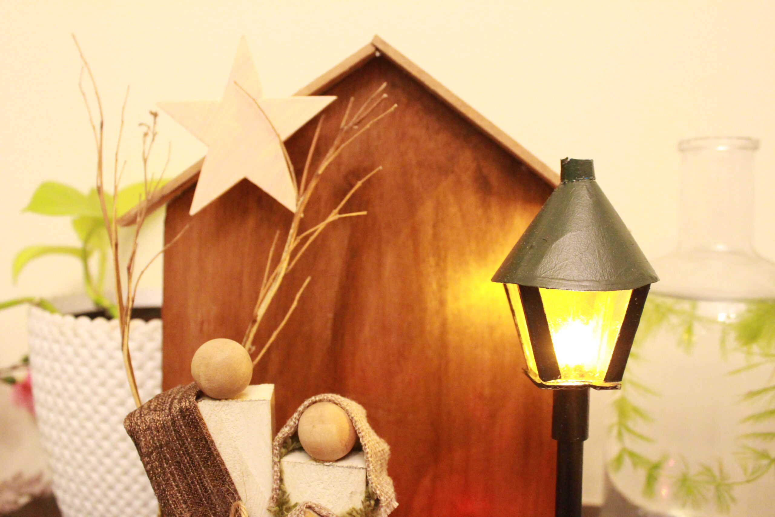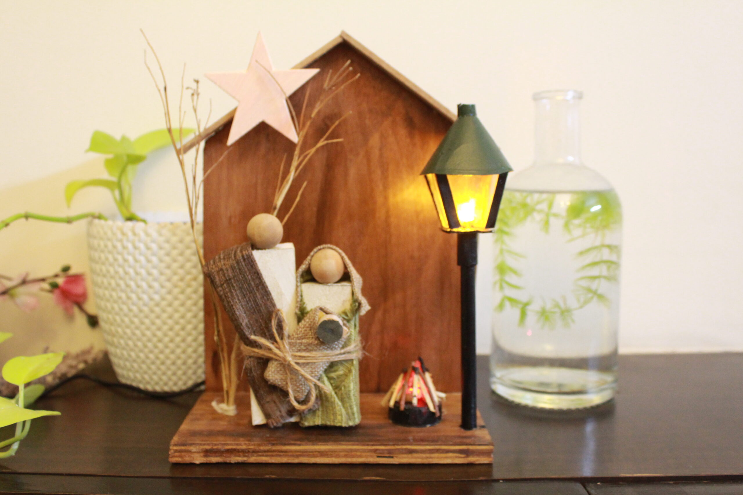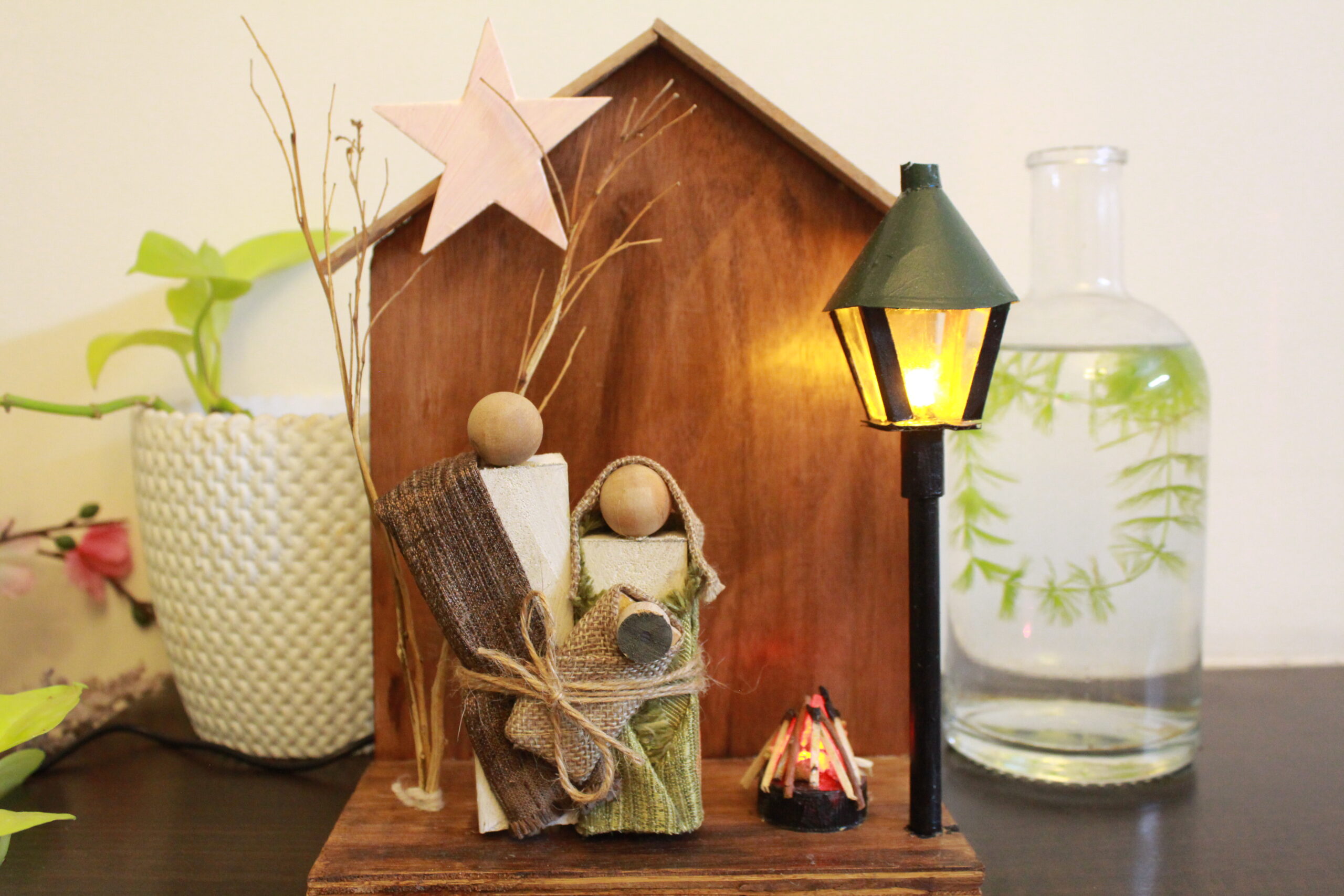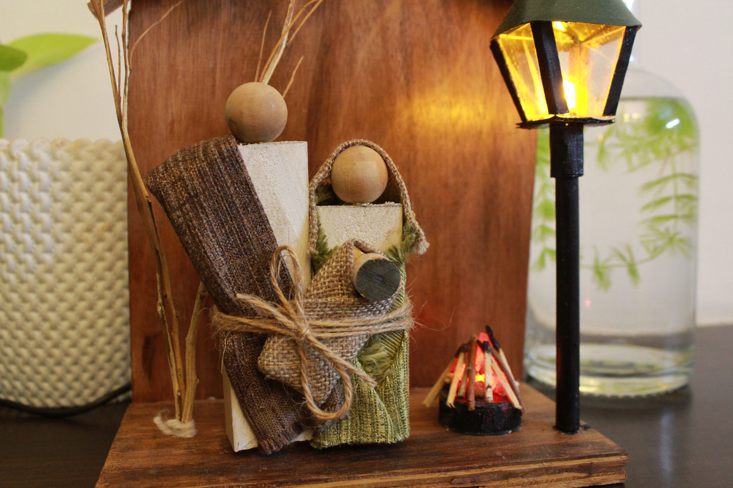 Our The First Christmas Scene is complemented by three stylized wooden Christmas trees in soft pastel and deep tones, creating a charming holiday display for your home, office, or church. Warm LED fairy lights (optional) add a magical glow, making it the perfect centerpiece for your Christmas décor.